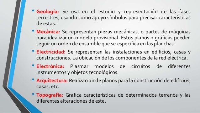 representaciones de todo tipo de elementos mecánicos, planos de arquitectura, urbanismo, etc, resueltos mediante el auxilio de conceptos geométricos, donde son aplicadas las matemáticas, la geometría